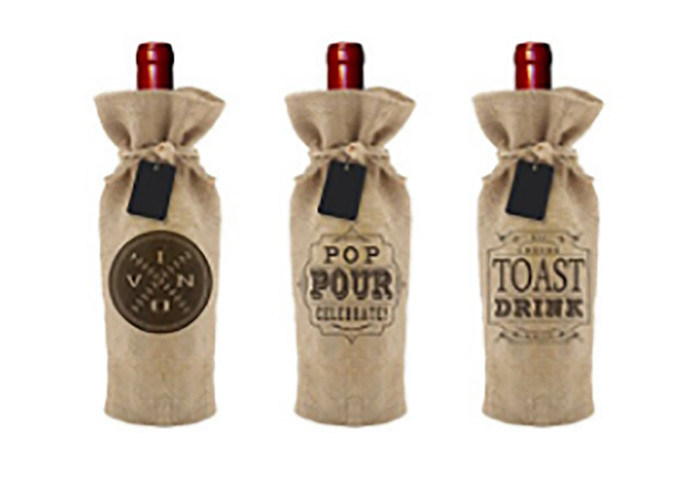 China Factory Custom Printing Weinflaschenbeutel Jute Weintasche mit Kordelzug |